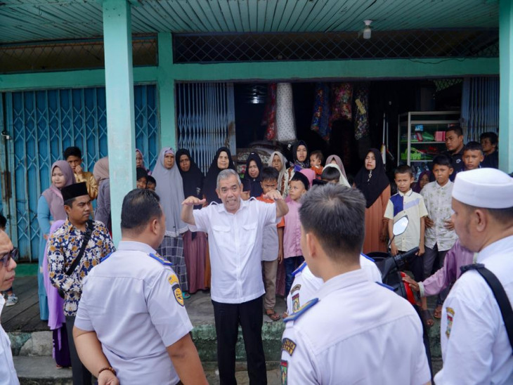 Usai peninjauan, Dr Kamsol menyempatkan menyapa dan menyalami para masyarakat dan poto bersama dengan warga yang baru saja dislokasi yang sama mengikuti kegiatan penyantunan anak anak yatim. (Diskominfo Kampar /Mzk).