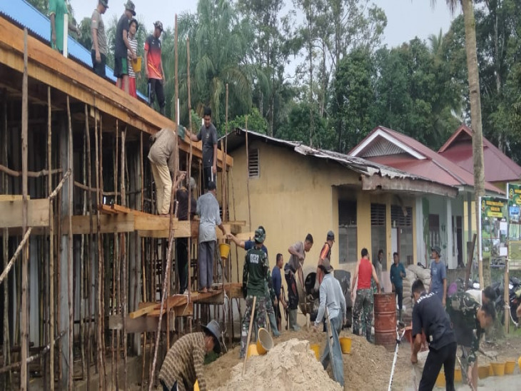 Tanjung Belit Selatan-Dalam rangka persiapan penutupan program TNI Manunggal Membangun Desa (TMMD) di Desa Tanjung Belit Selatan, tim Satgas TMMD melakukan pembangunan gapura TMMD di Titik 0 sasaran utama. Gapura ini sebagai simbol dari kesuksesan kerja keras dan kolaborasi antara anggota Satgas TMMD dan masyarakat setempat dalam mewujudkan program pembangunan yang memiliki dampak positif bagi seluruh komunitas.(Sabtu,17/08/24)