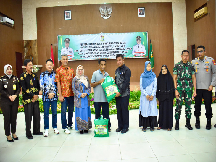 Bangkinang Kota - Bukan sekedar Janji Kampanye Bupati dan Wakil Bupati Kampar, Bupati Kampar H. Ahmad Yuzar, S.Sos, MT langsung Salurkan Bantuan Sosial Berupa Beras Premium Kepada Penyandang Disabilitas, Lanjut Usia dan Perempuan Rawan Sosial Ekonomi atau Janda yang dikategorikan Miskin pada Bulan Agustus-September Tahun 2025, yang digelar di Aula Kantor Bupati Kampar, Kamis (25/9/2025).