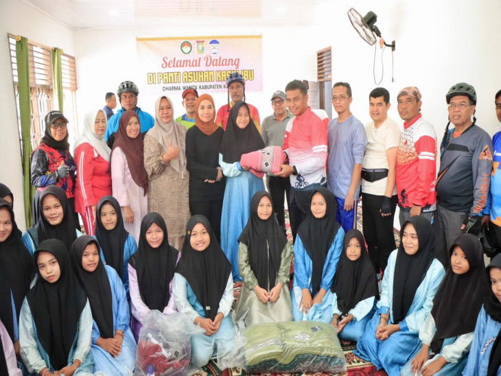 Bangkinang Kota – Usai melaksanakan kegiatan gowes pagi, Bupati Kampar Ahmad Yuzar, S.Sos., M.T. bersama Komunitas Sepeda Kampar (Koseka) menyerahkan bantuan kepada Panti Asuhan Kasih Ibu Bangkinang berupa selimut dan uang tunai kepada anak-anak panti, Ahad (11/10/2025). Penyerahan bantuan ini merupakan Momentum bersempena dengan peringatan Hari Perhubungan Nasional dan Hari Olahraga Nasional.