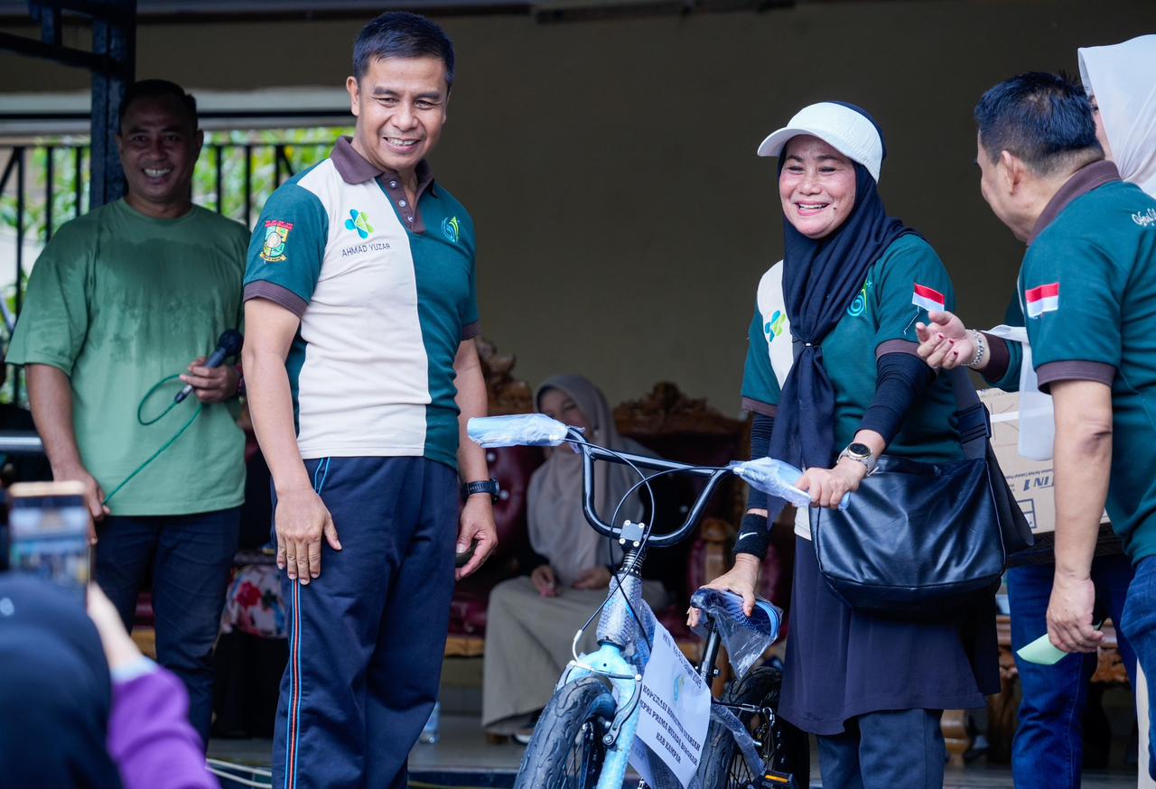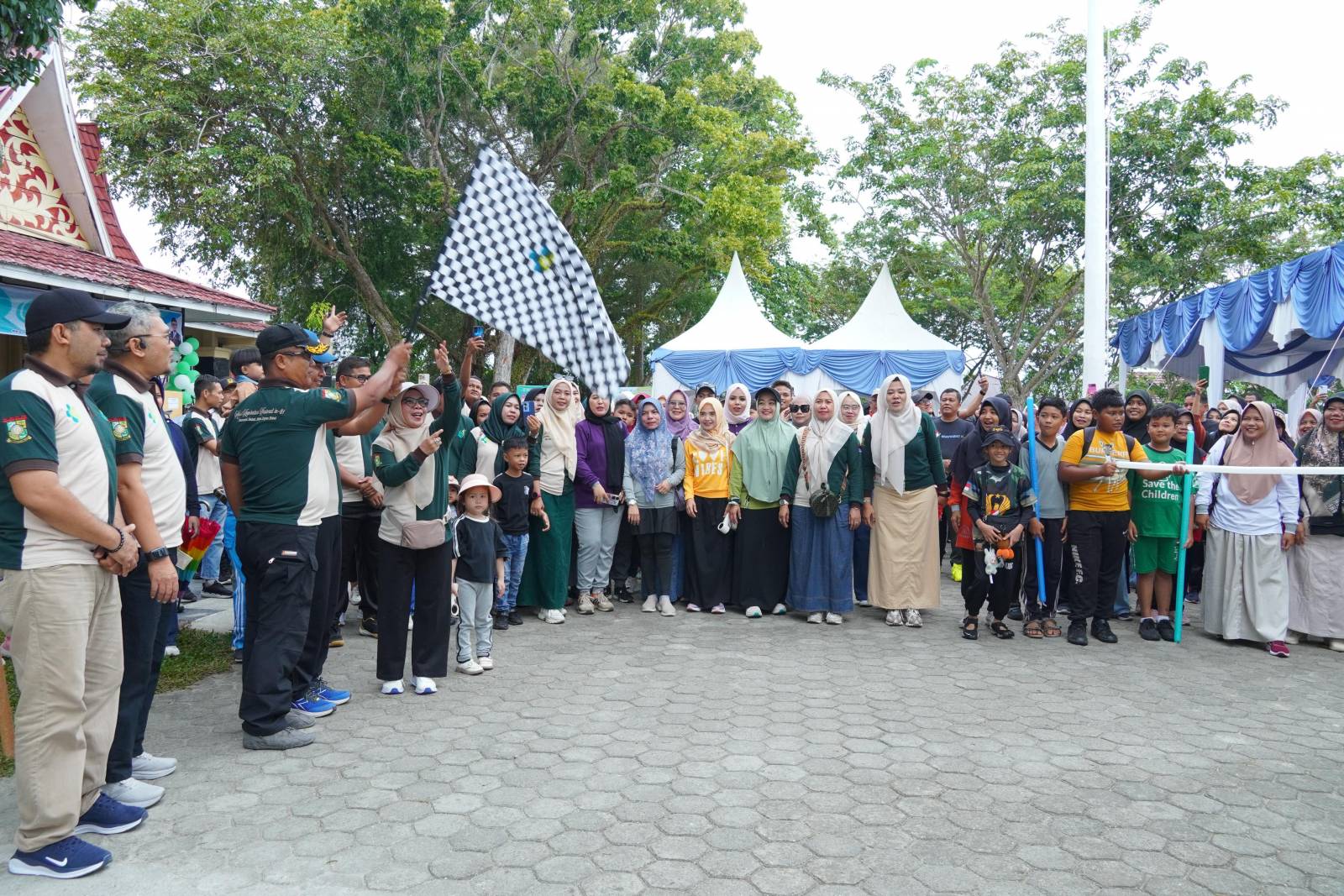 Bangkinang Kota — Bupati Kampar Ahmad Yuzar S.Sos MT dan Wakil Bupati Kampar Dr Misharti S.Ag M.Si menghadiri dan melepas secara resmi kegiatan Gebyar Hari Kesehatan Nasional (HKN) ke-61 yang ditandai dengan pelaksanaan jalan santai bersama masyarakat, tenaga kesehatan, pelajar, dan berbagai komunitas, Minggu pagi (16/11/2025) di Lapangan Pelajar Bangkinang Kota. Bupati Kampar Ahmad Yuzar S.Sos, MT dan Wakil Bupati Kampar Dr Misharti S.Ag M.Si ikut langsung mengikuti jalan sehat bersama dengan ribuan masyarakat yang mana pada Gebyar HKN tahun 2025 ini menyediakan banyak doorprize menarik serta berbagai kegiatan yang berkaitan dengan pelayanan kesehatan, senam sehat dan sosialisasi kesehatan..