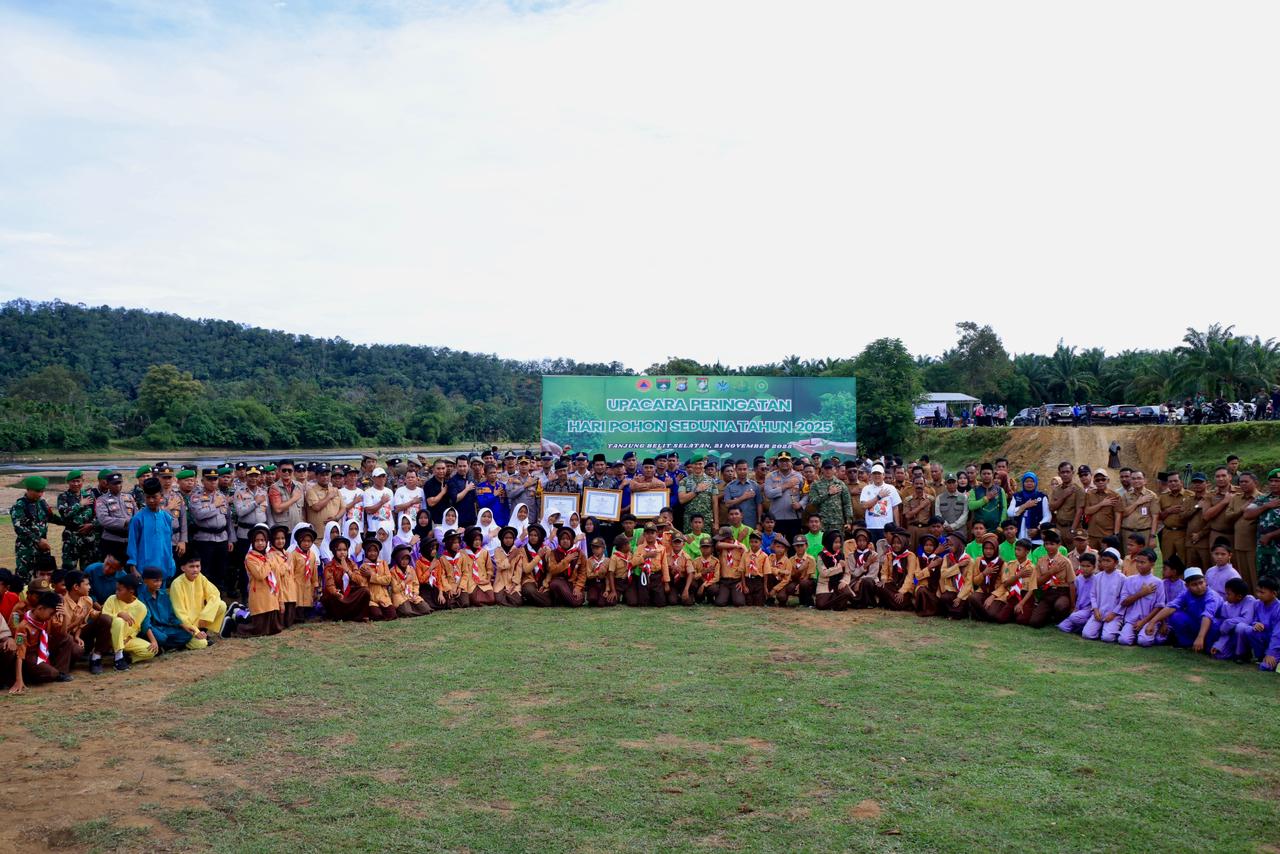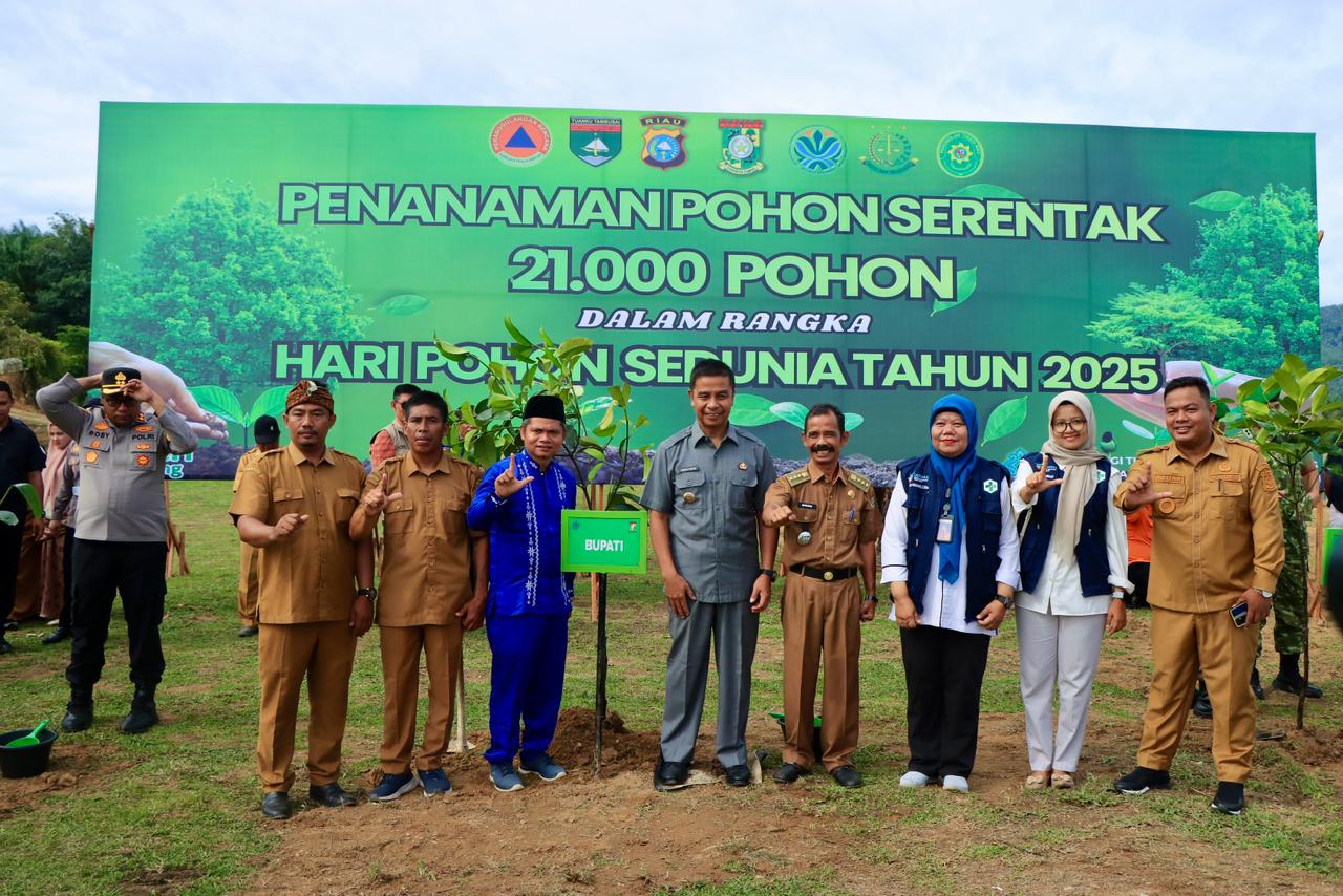 Tanjung Belit Selatan – Sempena peringatan Hari Pohon Sedunia, Pemerintah Kabupaten Kampar menggelar Upacara dan Gerakan Penanaman Pohon Serentak sebanyak 21.000 batang pohon, penanaman simbolis diadakan di bantaran Sungai Sebayang, Desa Tanjung Belit Selatan, Kecamatan Kampar Kiri Hulu, Jum’at (21/11). Kegiatan ini menjadi momentum penting dalam menguatkan kembali kesadaran kolektif masyarakat untuk menjaga dan melestarikan lingkungan hidup.