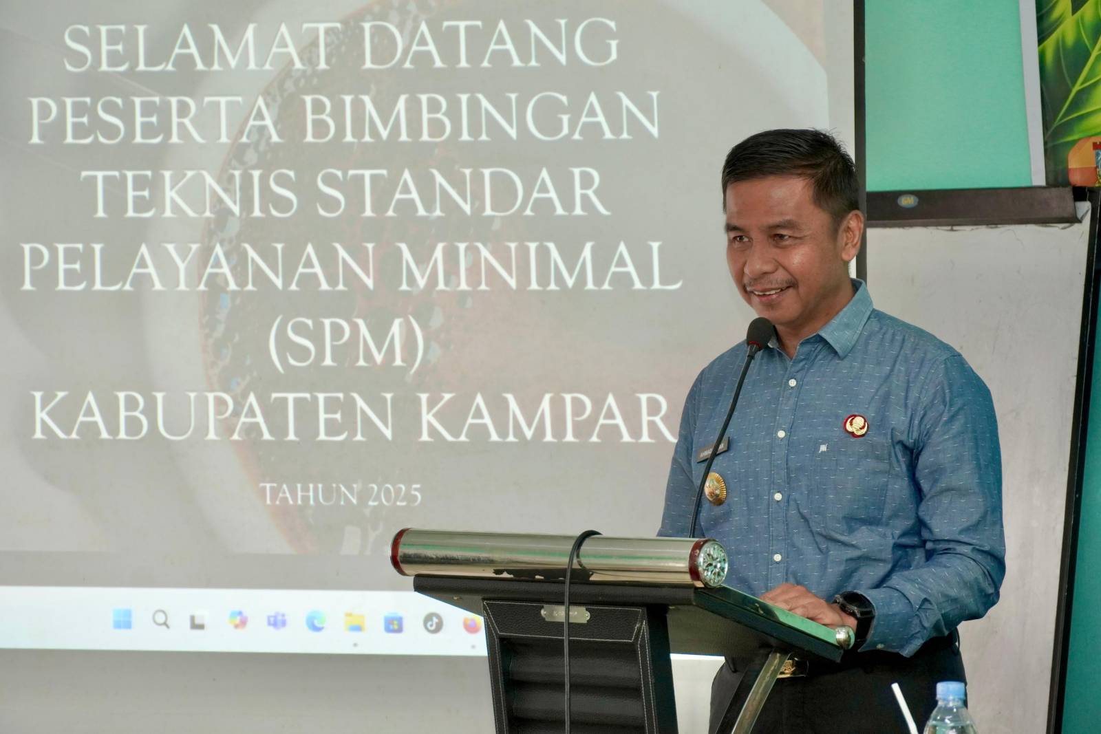 Bangkinang Kota — Bupati Kampar Ahmad Yuzar S.Sos M.T secara resmi membuka Bimbingan Teknis Standar Pelayanan Minimal (SPM) Kabupaten Kampar Tahun 2025 dengan tema “Optimalisasi Penerapan Standar Pelayanan Minimal (SPM)” yang diselenggarakan dalam rangka meningkatkan kualitas penyelenggaraan pelayanan dasar di lingkungan Pemerintah Kabupaten Kampar yang digelar Ruang Rapat Dt. Tabano - Stanum Resort Bangkinang Kota. Selasa (25/11/2025).