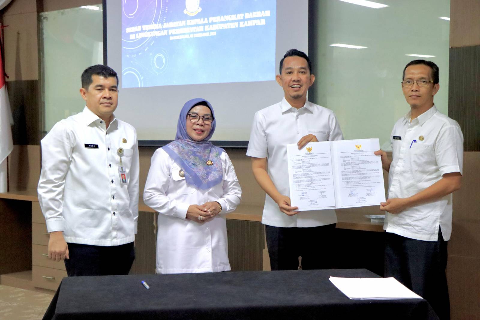 Bangkinang Kota — Setelah beberapa hari lalu Pemkab Kampar melakukan pelantikan terhadap kepala Organisasi Perangkat Daerah (OPD) di Lingkungan Pemerintah Kabupaten Kampar, pada hari ini Wakil Bupati Kampar Dr Misharti S.Ag M.Si menghadiri dan memimpin langsung prosesi Serah Terima Jabatan (Sertijab) Kepala Perangkat Daerah di lingkungan Pemerintah Kabupaten Kampar yang digelar pada Rabu (3/12/2025) di Ruang Rapat Lt. 3 Kantor Bupati. Acara ini merupakan tindak lanjut dari pelantikan dan rotasi pejabat yang dilakukan dalam rangka penyegaran organisasi serta peningkatan kinerja birokrasi Pemkab Kampar.