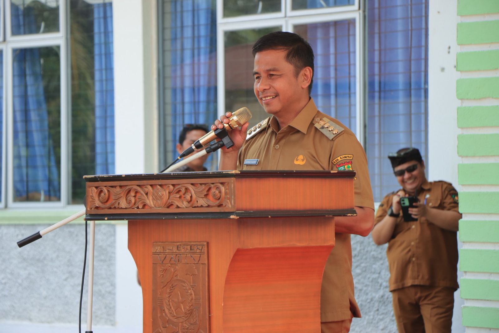Dalam kegiatan tersebut, Bupati Kampar Ahmad Yuzar didampingi oleh Kepala Dinas Kependudukan dan Pencatatan Sipil (Disdukcapil) Kabupaten Kampar Muslim S.Sos, Kepala Dinas Komunikasi dan Informatika Kabupaten Kampar Lukmansyah Badoe S.Sos M.Si, Kepala Dinas Pertanian Kabupaten Kampar Nurilahi Ali S.P M.MA, Pelaksana Tugas (Plt) Kepala Dinas Pekerjaan Umum dan Penataan Ruang (PUPR) Kabupaten Kampar Afrudin Amga S.T M.T, Inspektur Febrinaldi Tri Dermawan S.STP M.Si