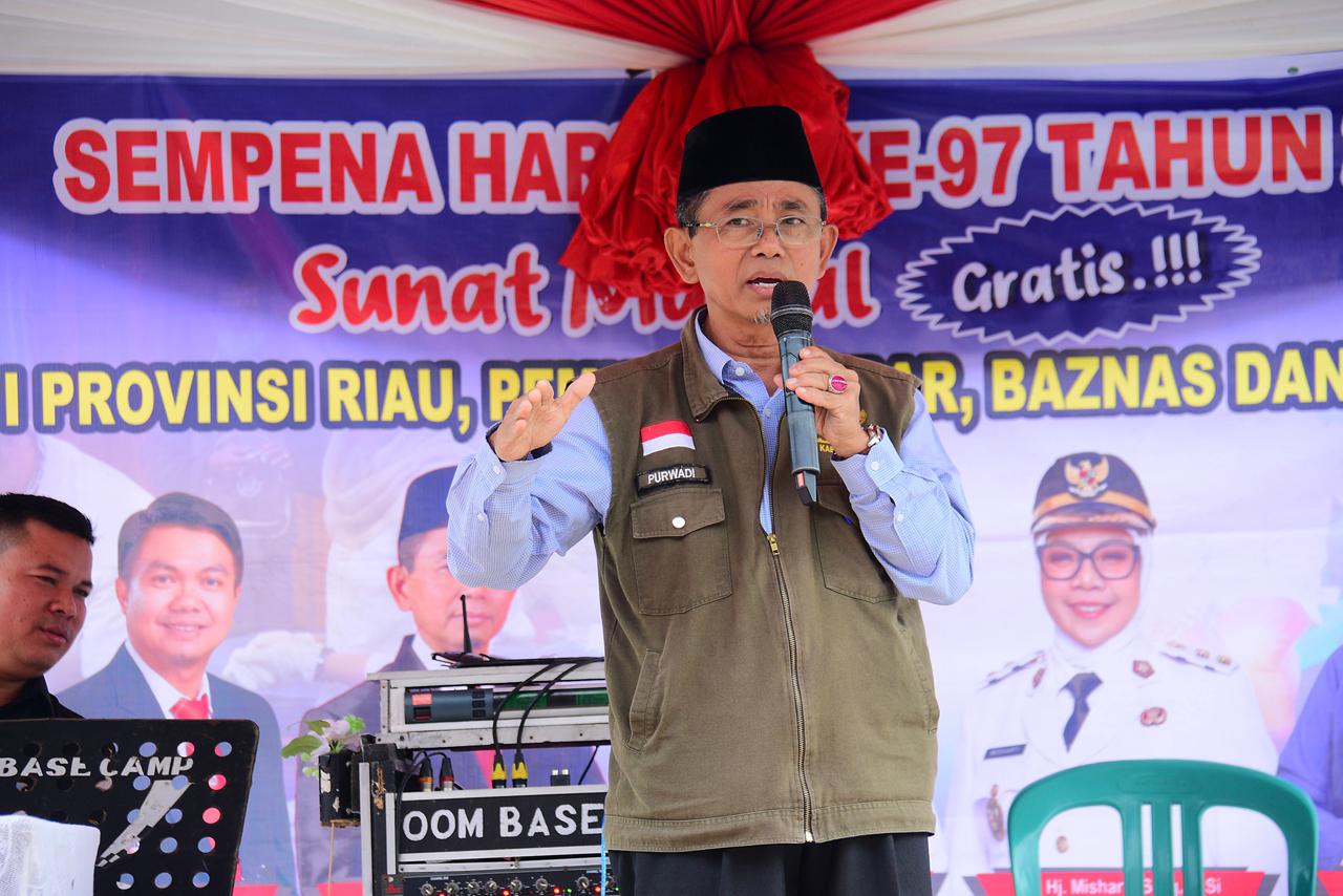 kDalam sambutannya, Ketua Baznas Kampar Purwadi menyampaikan bahwa kegiatan ini merupakan bagian dari Program Kampar Sehat kegiatan Sunatan masal yang bertujuan Membantu masyarakat yang kurang Mampu, sehingga bisa membantu meringankan beban Orang tua Anak.