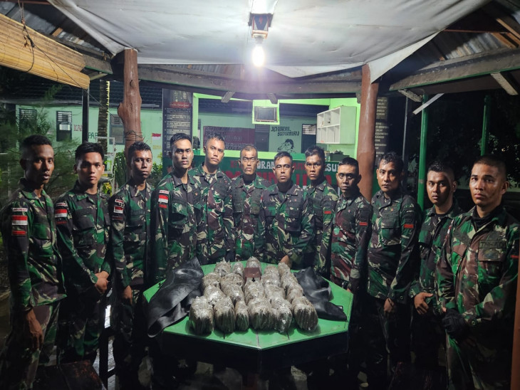 Kota Jayapura - Tim Patroli Malam Pos Komando Utama Satgas Pamtas RI-PNG Yonif 132/BS yang dipimpin langsung oleh Wadansatgas Mayor Inf Zulfikar Rakita Dewa, berhasil menggagalkan upaya penyelundupan narkotika jenis Ganja Kering yang dibawa oleh 2 Orang Tak DiKenal (OTK) sebanyak 20 paket seberat 8.254 gram di tengah-tengah hutan belantara Perbatasan Skouw-Wutung, Distrik Muara Tami, Kota Jayapura, Provinsi Papua, Minggu (18/6).