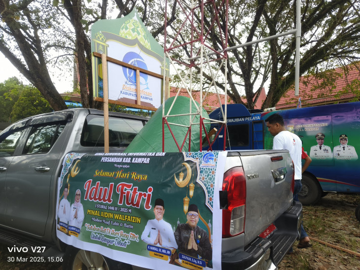 Bupati Kampar H Ahmad Yuzar yang dikonfirmasi melalui Plt. Kadiskominfo dan Persandian Kabupaten Kampar Zulfikar, S. Ag, M Si serta menindaklanjuti rapat persiapan Iedul Fitri 1446 H beberapa waktu lalu, insyaallah hari ini Ahad (31/03/2025) "Insyaa Allah kegiatan Pemda Kampar malam ini melaksanakan Pawai Takbir menyebut hari raya Idul Fitri 1446 H/2025 M," ujar Kabag dengan singkat.