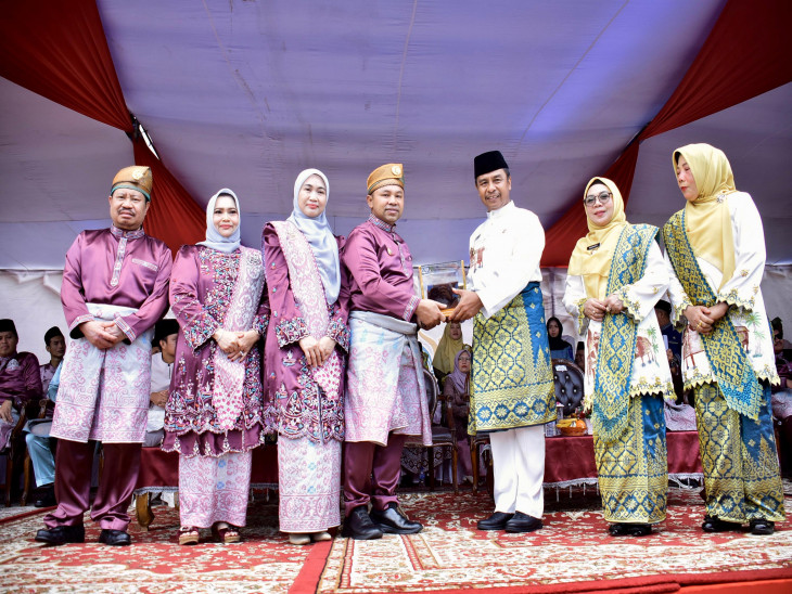 Bupati Kampar Ahmad Yuzar pada saat pawai juga tampak didampingi oleh Kerua TP PKK Kabupaten Kampar T. Nurheryani Ahmad Yuzar.