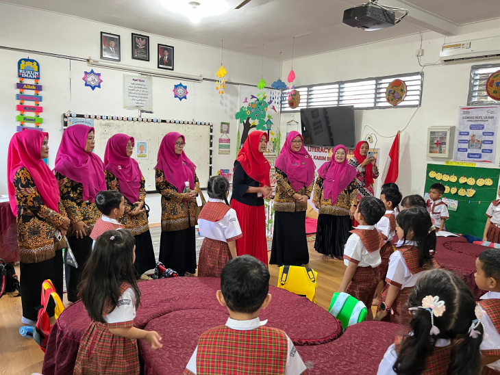 Padang - Tiba di Kota Padang pada Kamis Pagi (07/08), DPC PP-PAUD Kabupaten Kampar yang dipimpin oleh Ricana Djayanti Hambali beserta rombongan disambut hangat oleh Kepala TK Telkom Padang Irma Candra Dewi, S.Pd, Pengawas TK Kota Padang Hj. Yulkarnaini, S.Pd dan majelis guru.