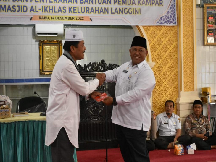 Pada kesempatan tersebut Pemda Kampar juga memberikan bantuan ke masjid Al-Ihklas berupa uang yang sudah di masukkan di dalam rekening sebanyak 55 Juta Rupiah, di berikan lansung oleh Sekda Kampar kepada Pengurus Masjid Al-Ihklas Kelurahan Langgini Kecamatan Bangkinang Kota. (Diskominfo Kampar / RF)