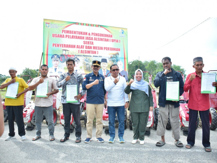 Bangkinang - Pemerintah Kabupaten Kampar melalui Dinas Pertanian dan Holtikultura Kabupaten Kampar menyerahkan Alat dan Mesin Pertanian (Alsintan) Hand Traktor, " Program ini untuk mendukung Areal Tanam (Pat) dan Peningkatan Produksi Padi Tahun Anggaran 2025, yang diselenggarakan di Desa Binuang, Kecamatan Bangkinang, Jum’at (10/10/2025).