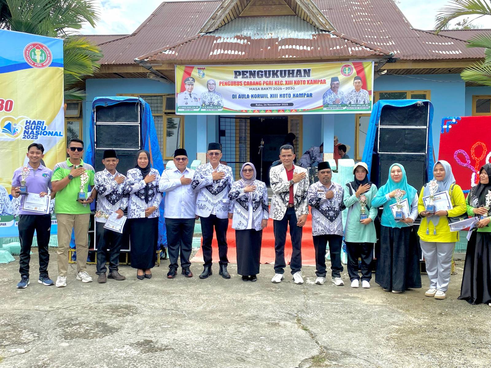 Sementara itu, Camat XIII Koto Kampar Zulfikar mengungkapkan kebanggaannya atas capaian prestasi yang telah ditorehkan PGRI selama ini. Ia berharap momentum pelantikan dapat menjadi semangat baru untuk meraih prestasi yang lebih tinggi lagi.
